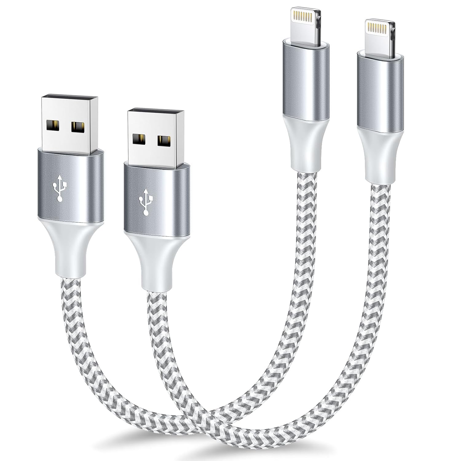 【Compact & Convenient】:The total length of this short iPhone charger cable from the USB A end to the lightning end is 1 foot. Short charging wires can transmit and synchronize at the fastest speed (480MBPS) on your device, with a compact design that allows you to carry around and is easy to store.