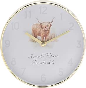Widdle Gifts Highland Cow Wall Clock 20cm Battery Operated – Home is where the Herd is 5283